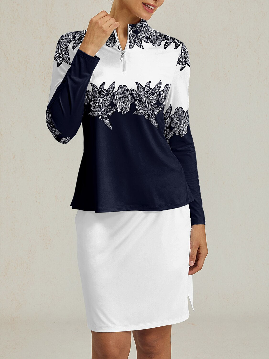 Botanical Energy Silky Ruffle Golf Shirt Quarterzip UPF50+