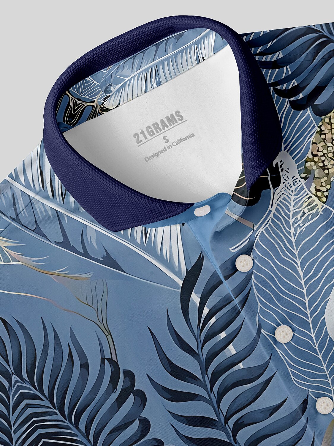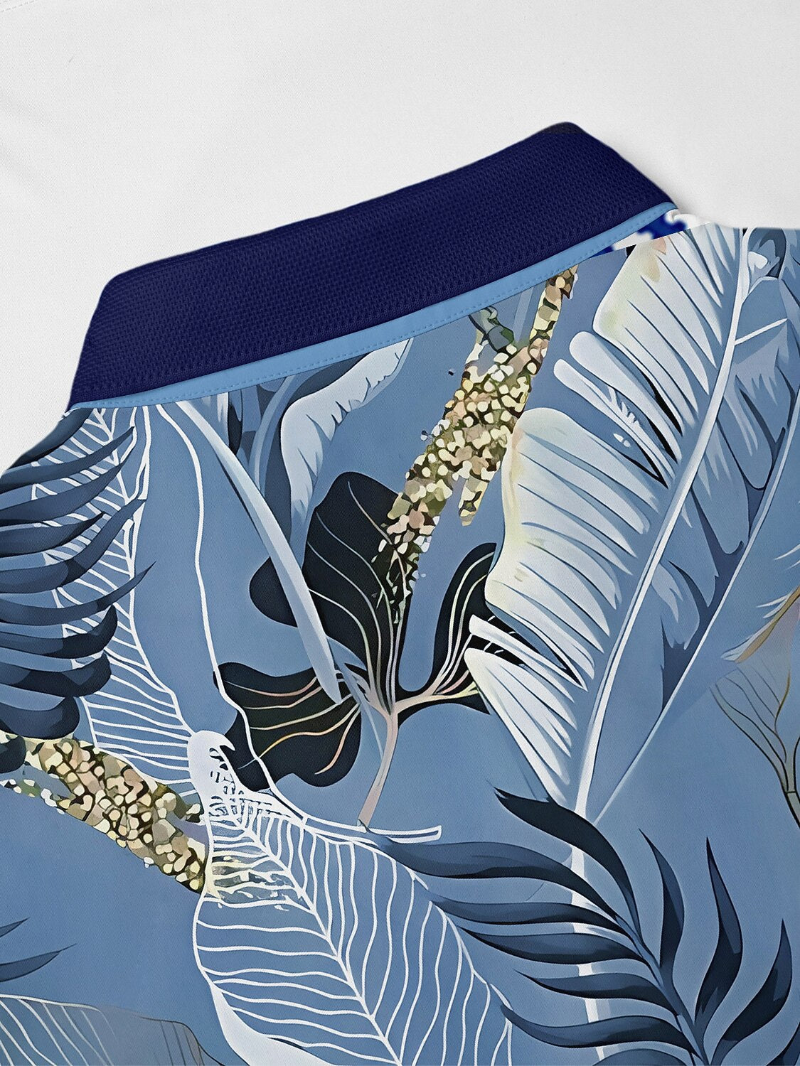 Hyped-up Tropical Men's Ribbed Collar Polo Top UPF50+