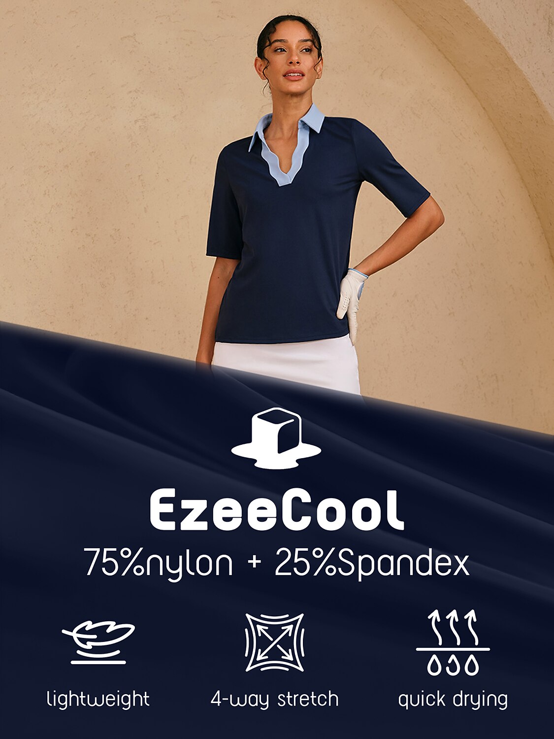 More Than Basic Half Sleeve Curve V-Neck Polo Top UPF50+
