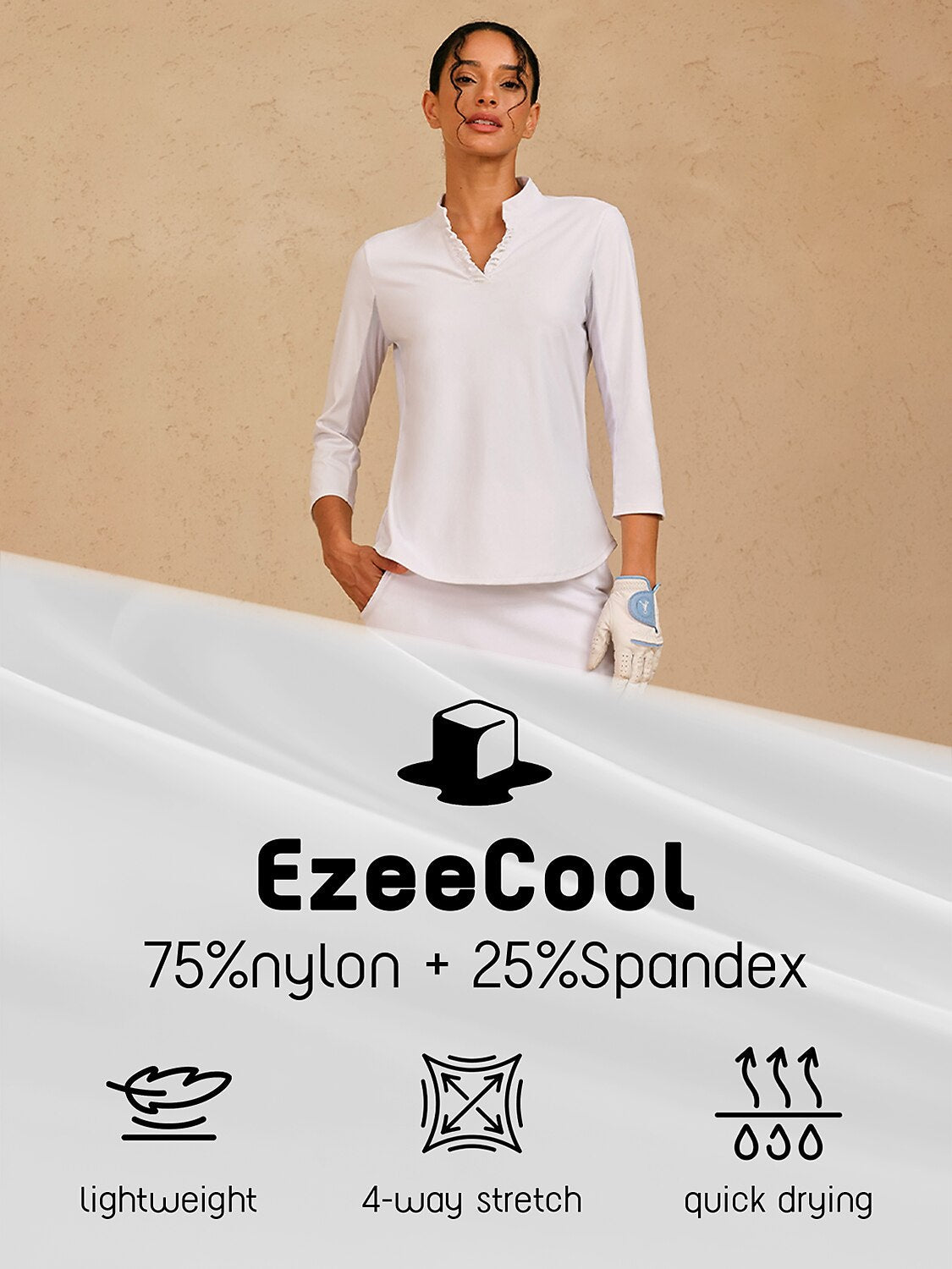 More Than Basic Ruffle V-Neck Mesh Polo Top UPF50+