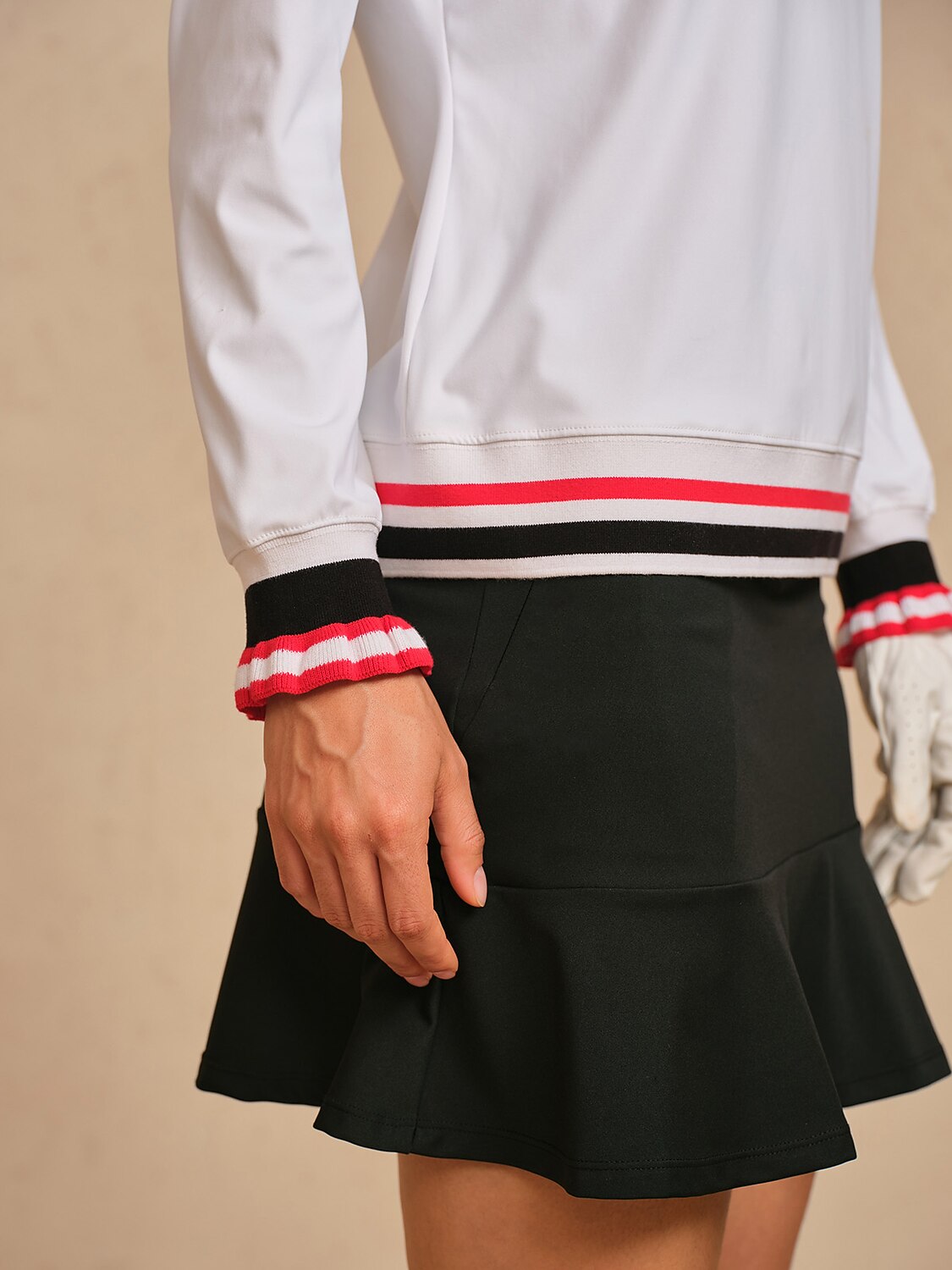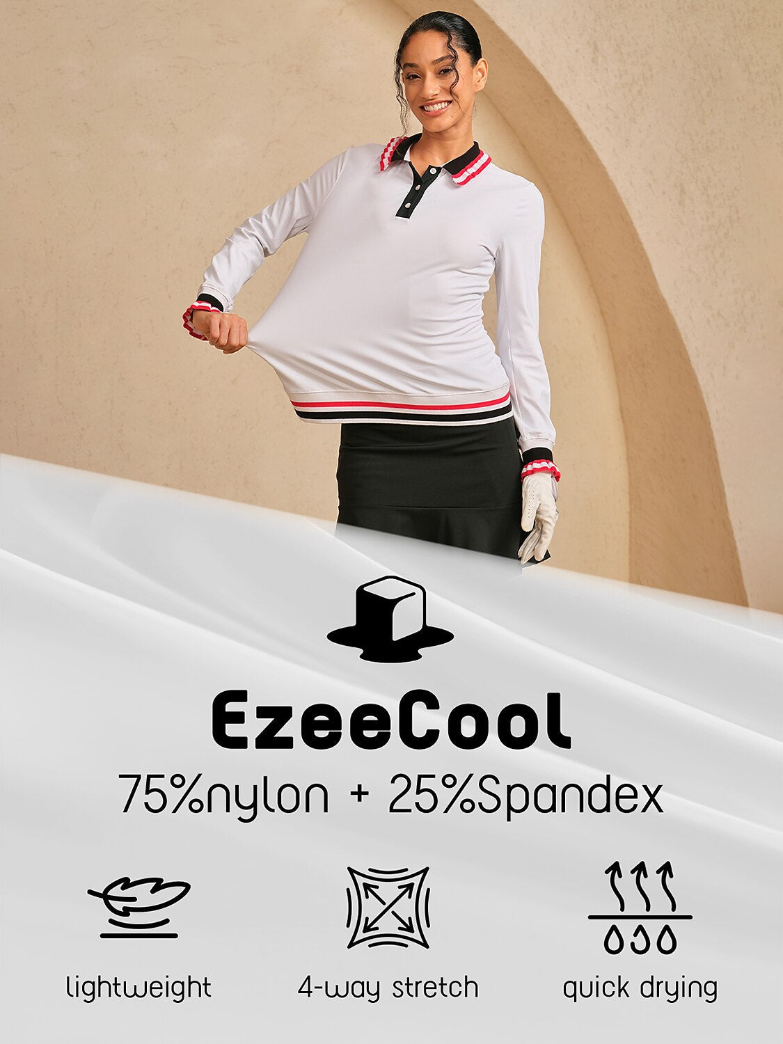 Navycore Ruffle Ribbed Lapel Golf Polo Shirt UPF50+